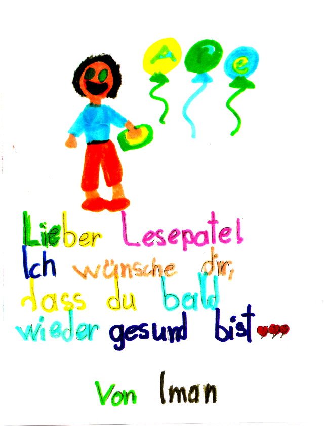 Dein Leonhard!!! PS: du bist der beste Lesepate, den man sich wünschen kann“.