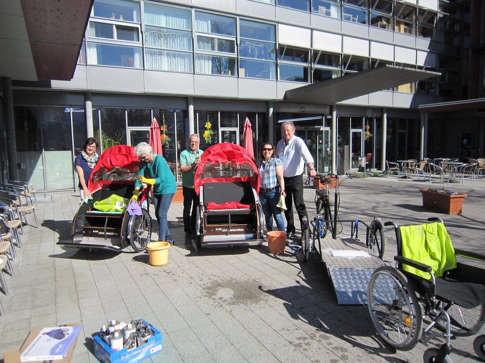 Nach der Winterpause haben wir die Rikschas wieder auf Hochglanz gebracht und die Piloten stehen bereit zur Ausfahrt .